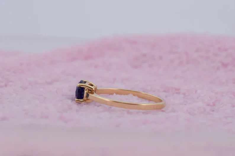 14K Goud June Amethist Diamant Ring