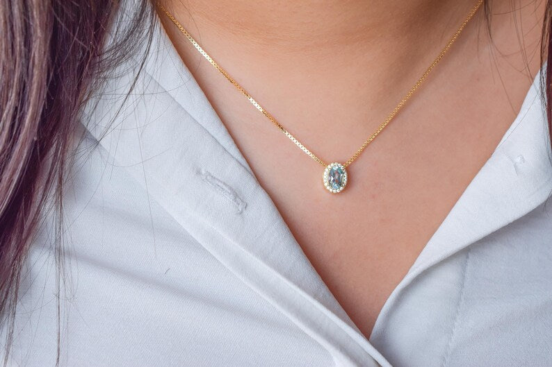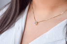 Deze handgemaakte ketting, gesmeed naar een eigen ontwerp, is met kristalheldere precisie en zorg vervaardigd om de hoogste kwaliteit te garanderen. De middelste steen is natuurlijke topaas, en die zorgvuldig zijn geselecteerd vanwege hun hoge kwaliteit.