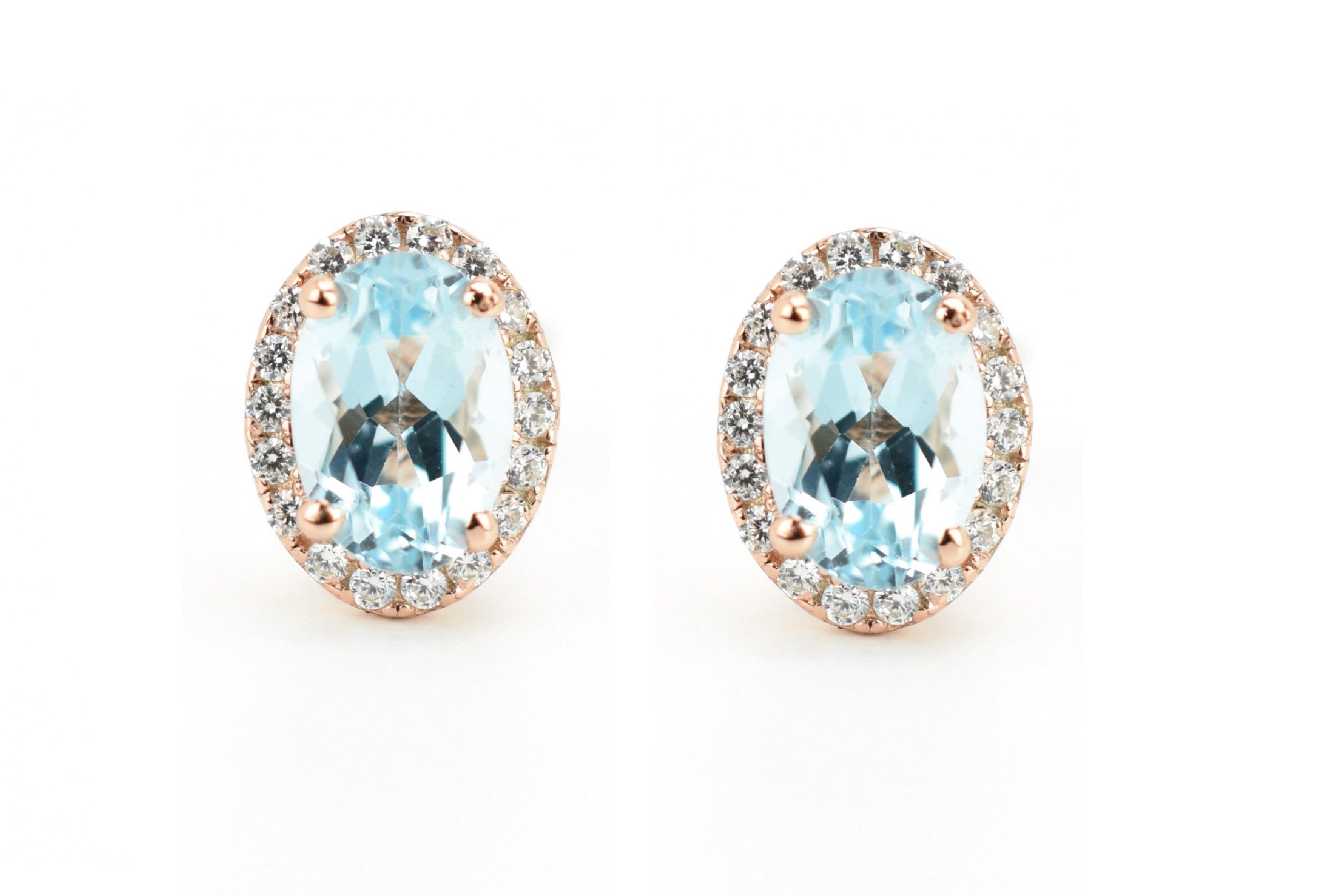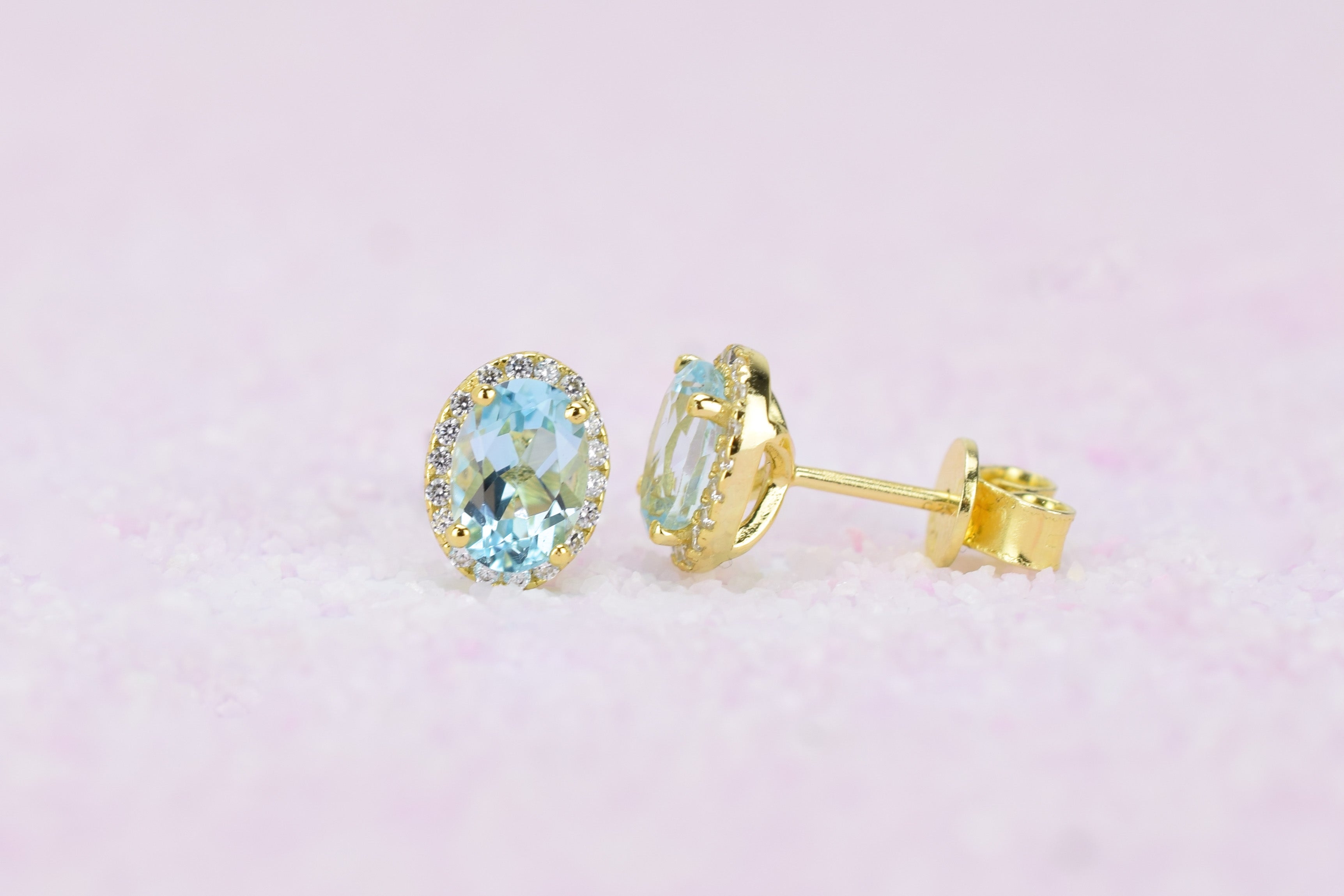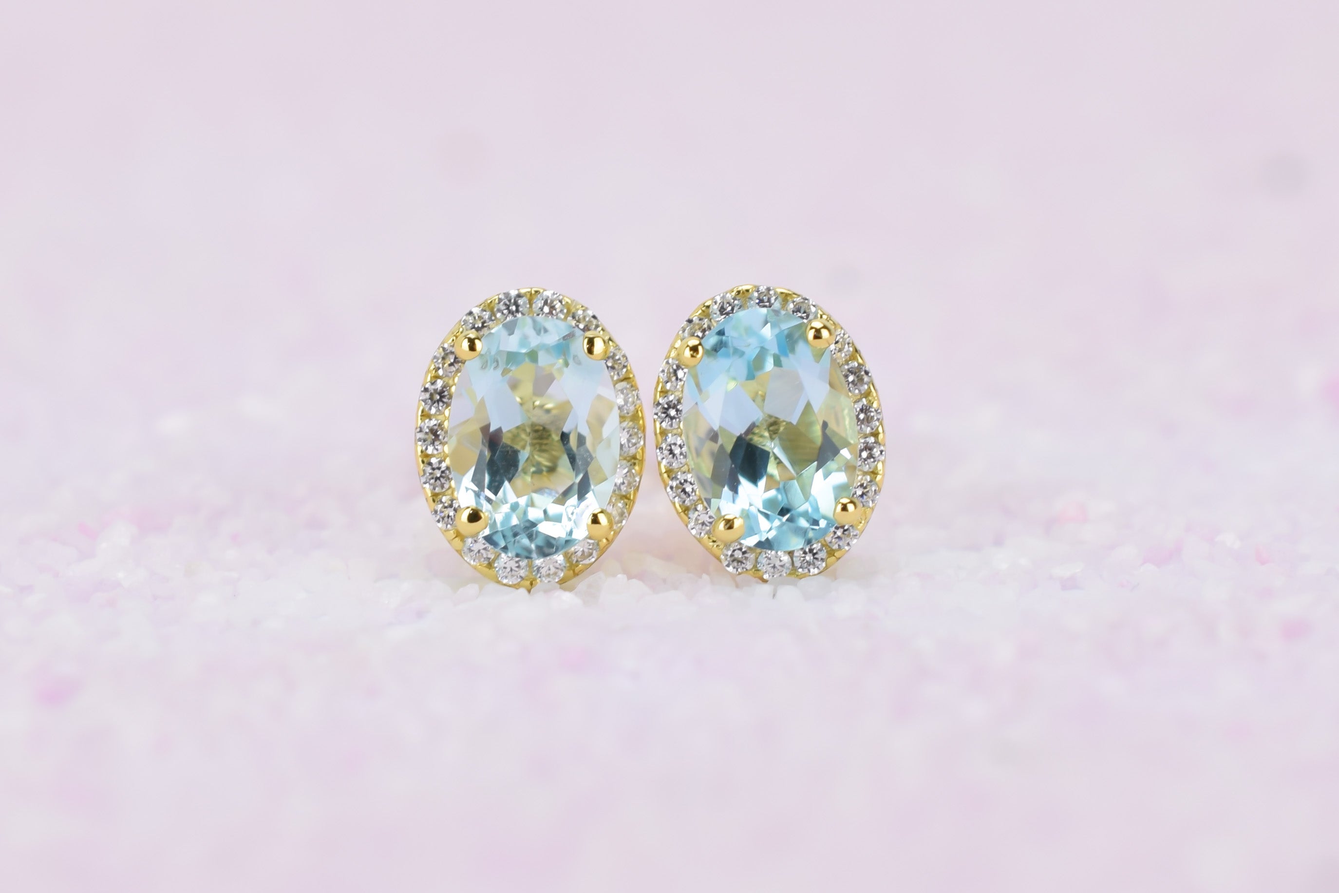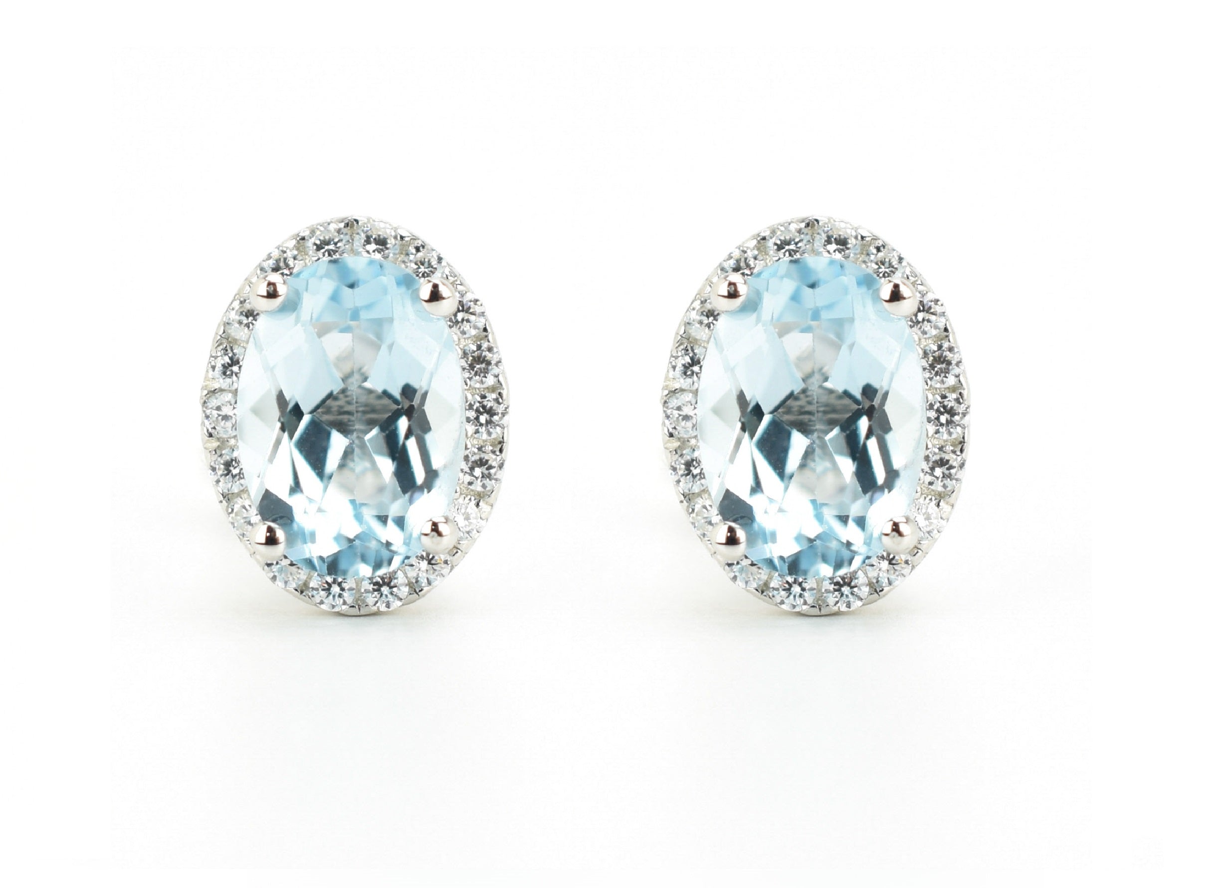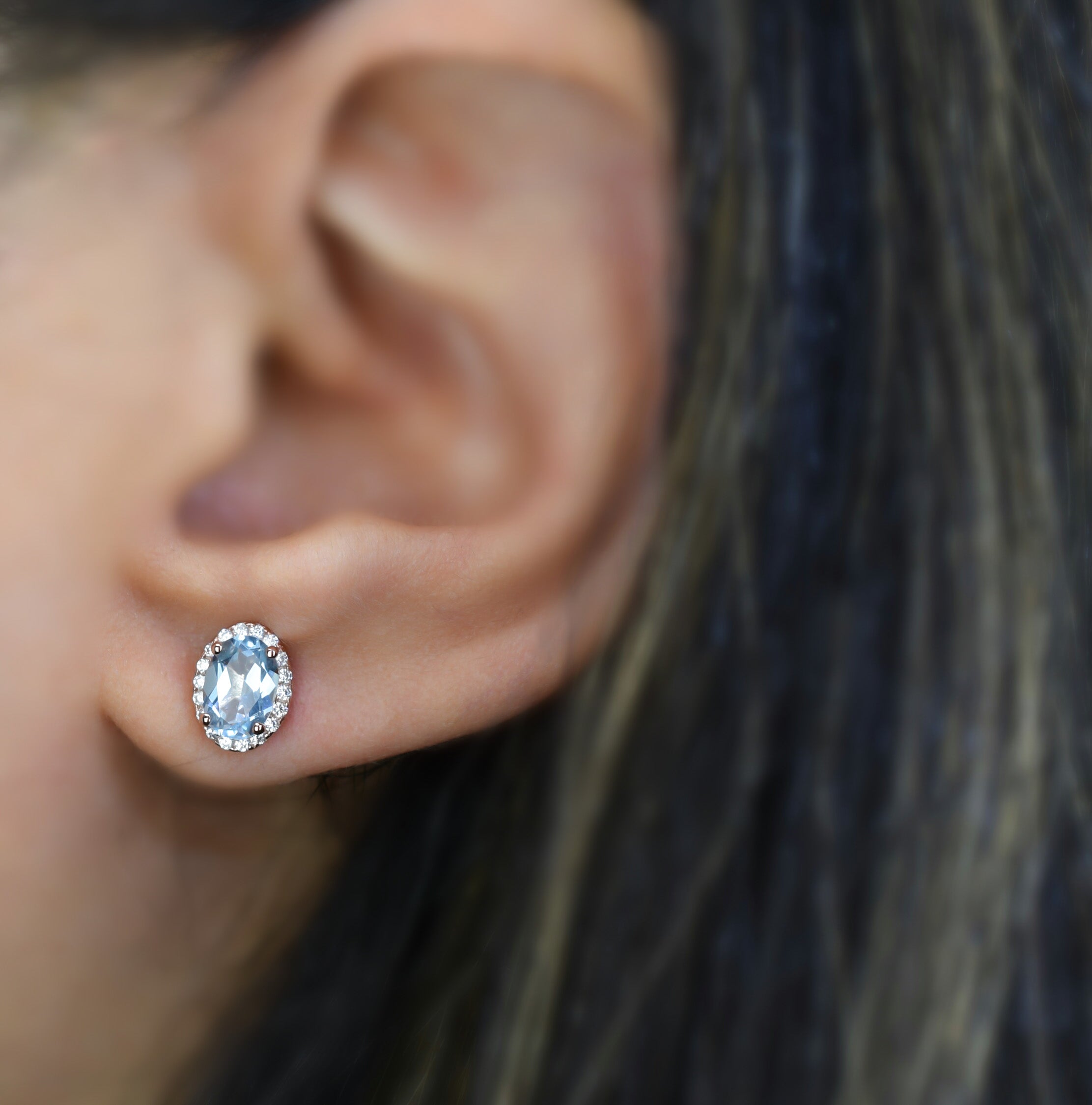 Deze aantrekkelijke oorsieraden zijn bezet met natuurlijke licht blauwe topaas edelstenen en kleine imitatiediamanten.